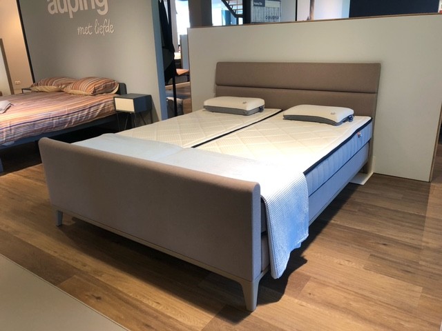 • Box en hoofdbord gestoffeerd in "Auping Peach Khaki" (kleur)