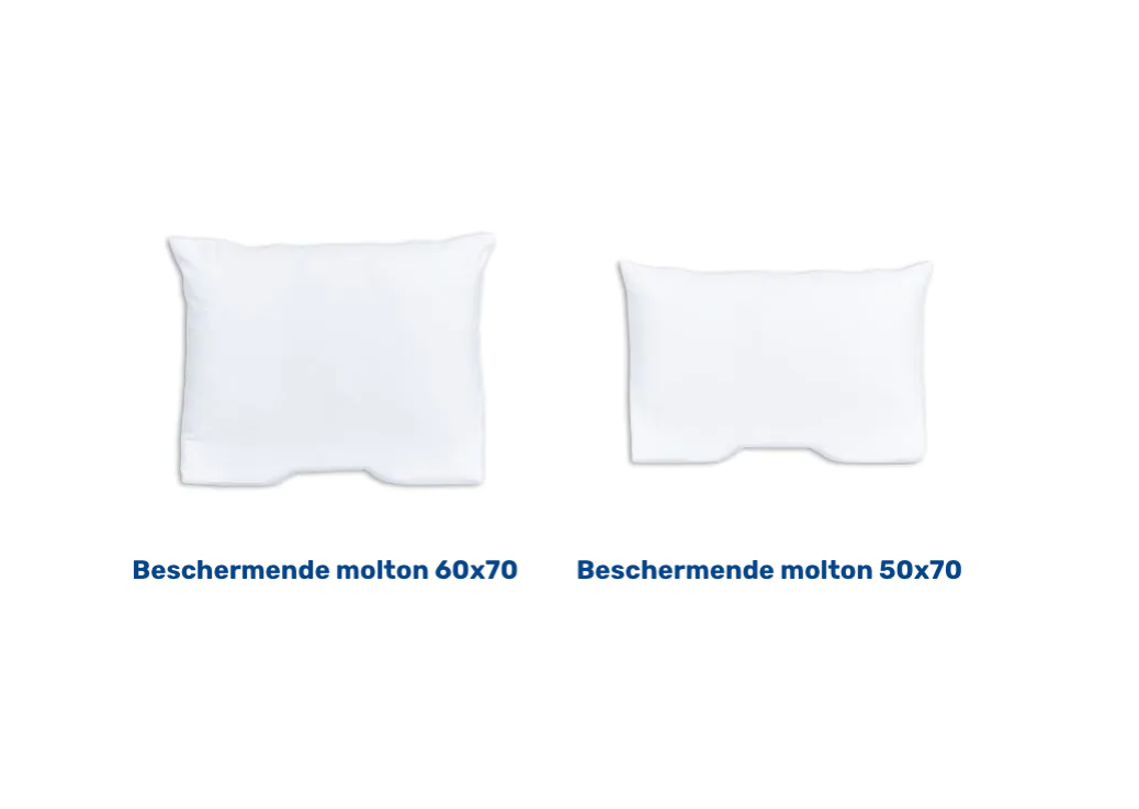 Je kan ervoor kiezen om een bijpassende molton erbij te bestellen, zo blijft je kussen langer schoon en gaat het langer mee. De molton kost € 19,95 per stuk.