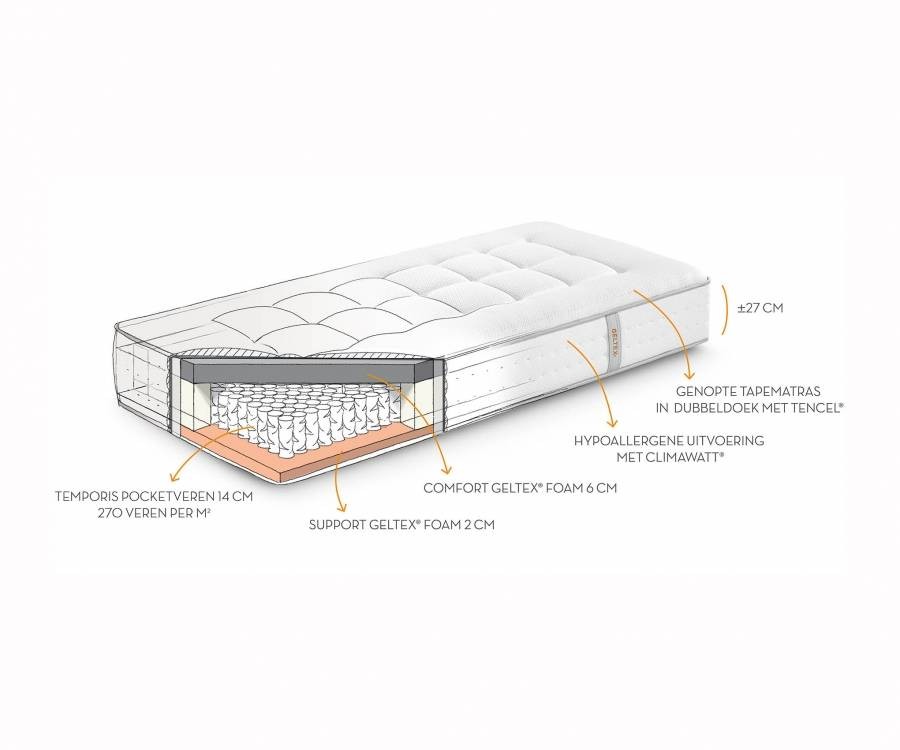 Vering: Exclusieve Temporis Pocketverenkern van 14 cm (270 veren per m2).