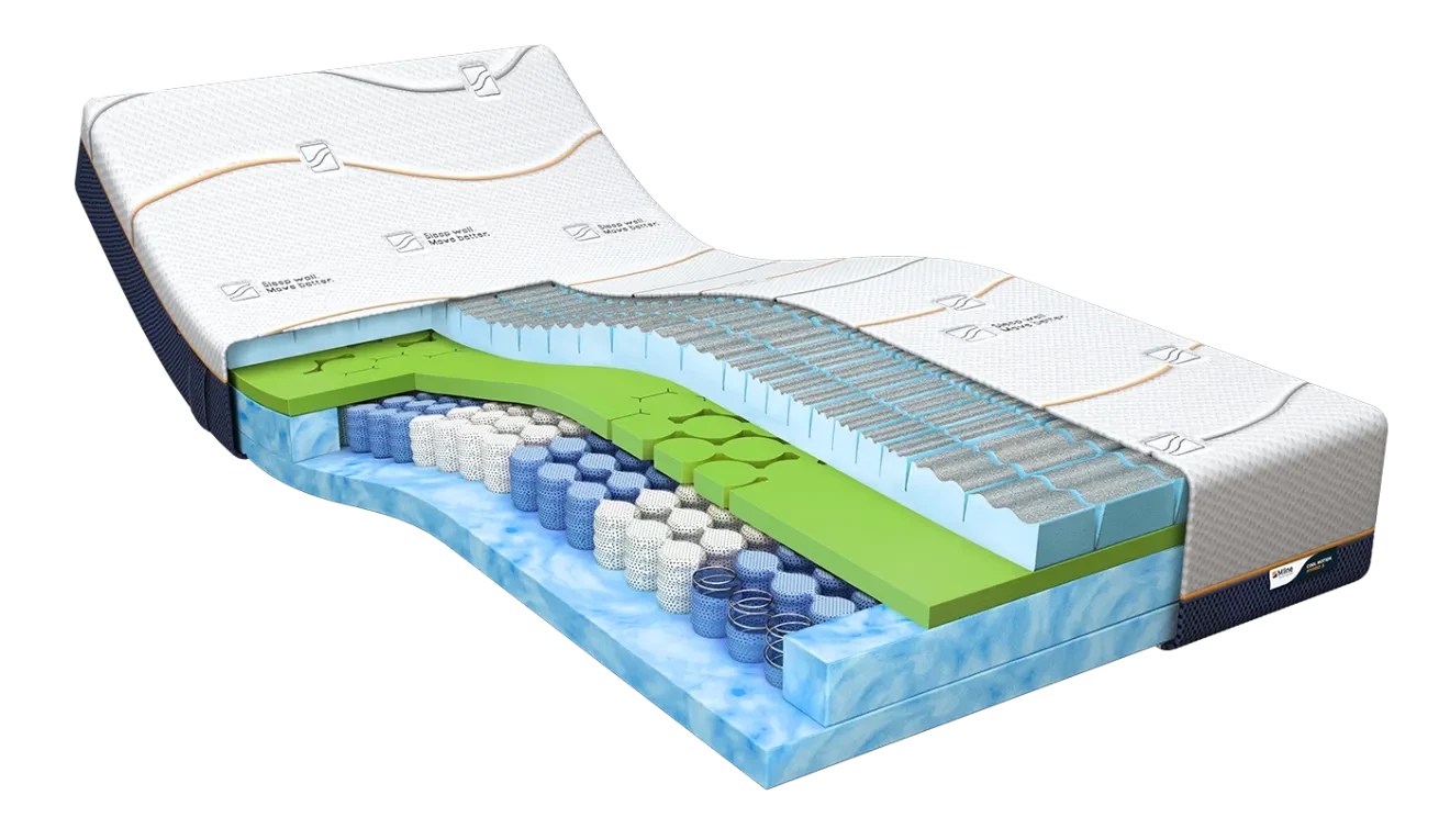 De M line Cool Motion 5 is een 'Hybrid' matras met een koudschuim basis, 7-zones pocketvering, clima-support laag en een zachte toplaag van traagschuim, die het beste van beide werelden combineert voor optimaal comfort en ondersteuning.
