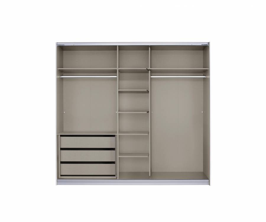 Met de standaard bijgeleverde legschappen en sterke, metalen hangroeden, kan je de kast zelf uitgekiend indelen. Tel daarbij op de perfecte afwerking, solide uitvoering, chique aluminium deurlijsten, uitgekiende (variabele) indeling, metalen plankdragers, keuze uit 7 breedtematen en 2 hoogtematen, 223cm hoog en 236cm hoog, 4 prachtige romp kleuren (Alpine wit, Grafiet, Zijdegrijs en Artisan Eiken) en 7 topactuele front kleuren (Kristal spiegel, Grijs spiegel, Glas zijdengrijs, Glas basalt, Glas Kristalwit, HG wit en HG soft grey).