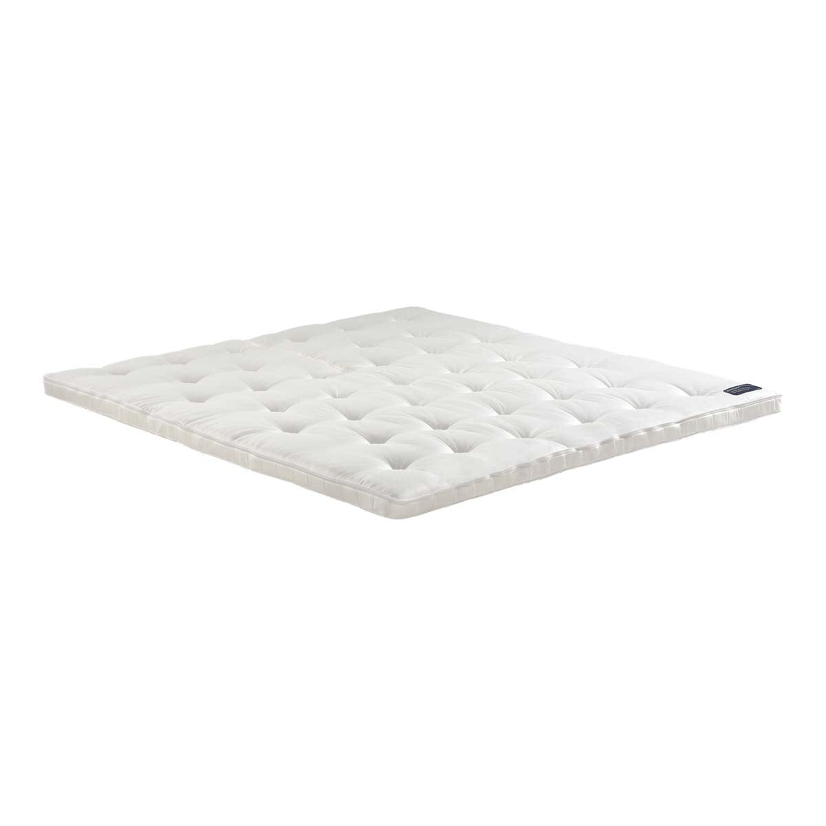 De Topper Pullman Goldline Supreme latex Split biedt luxe comfort met een kern van natuurlatex en een afdekking van natuurlijke materialen zoals wol, zijde en katoen, aangevuld met Comfortfill. De topper heeft een genopte afwerking in damast.