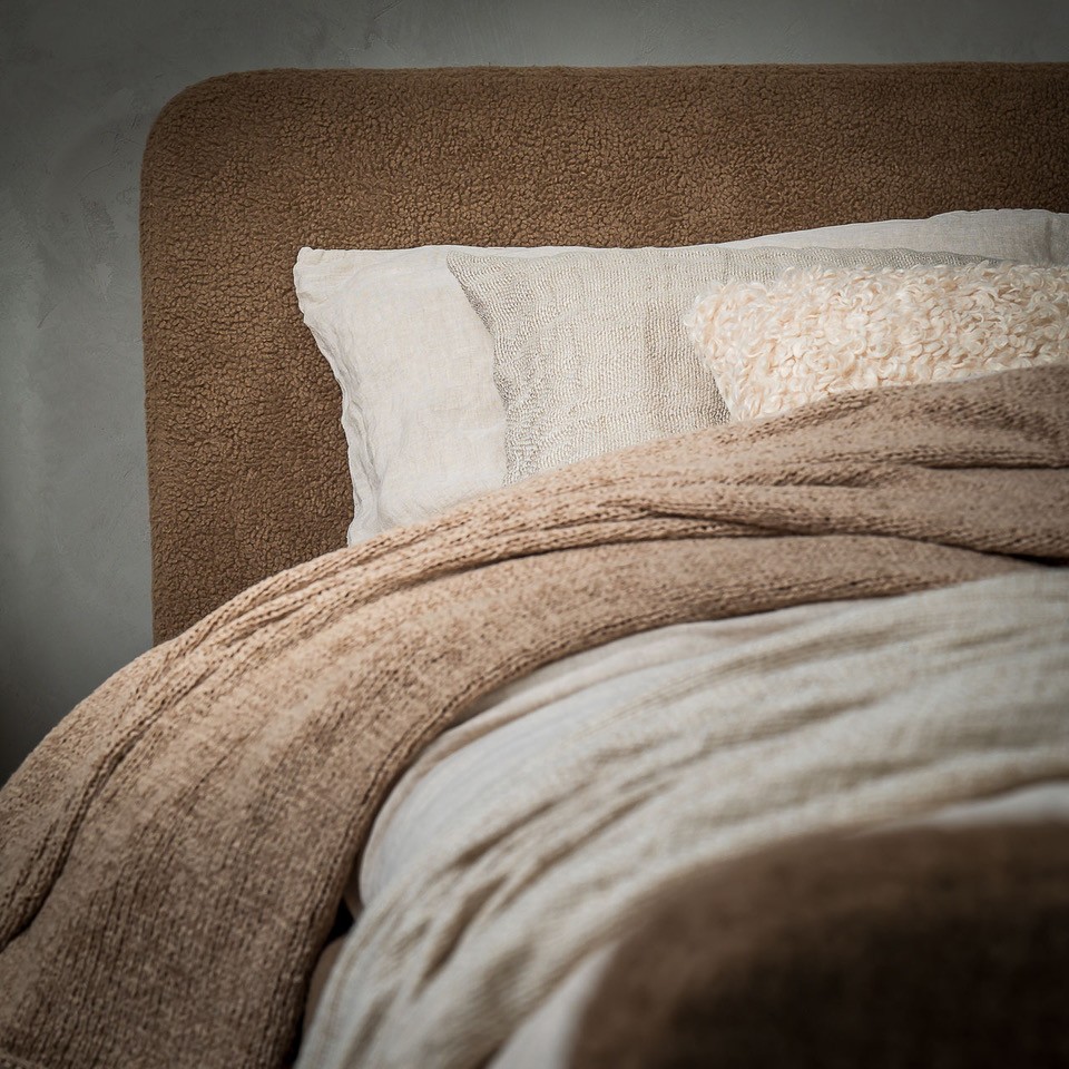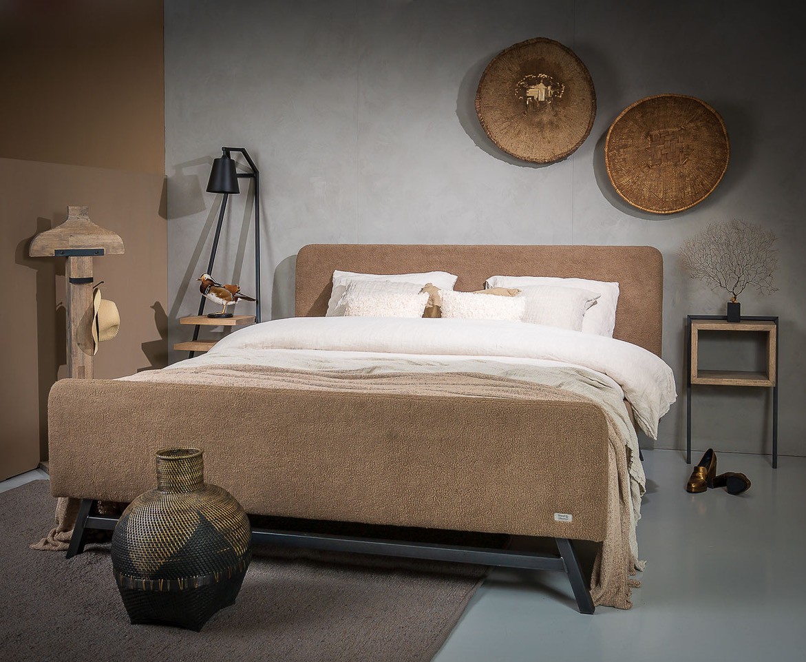 Olijfje is een volledig gestoffeerd ledikant bestaande uit een 4-zijdige bedombouw met een zwevend hoofdbord.