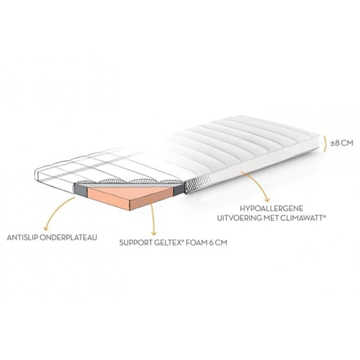 De Topper Beka GELTEX® 8 biedt dankzij de gepatenteerde GELTEX® Inside-technologie een perfecte combinatie van drukverdeling, ventilatie en ondersteuning. Deze topper zorgt niet alleen voor extra comfort, maar vermindert ook de voelbare naad tussen twee matrassen.